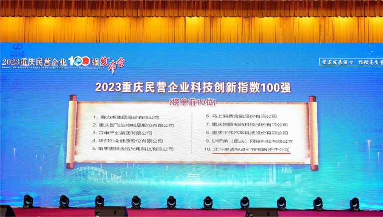 10月17日,由重庆市工商联、重庆市科技局、重庆市经济信息委主办的“2023重庆民营企业100强发布会”在渝州宾馆隆重举办,北斗星通智联科技有限责任公司(bicv)荣获“2023重庆民营企业科技创新指数100强(榜单前十位)”、“2023重庆制造业民营企业100强”两项殊荣。
